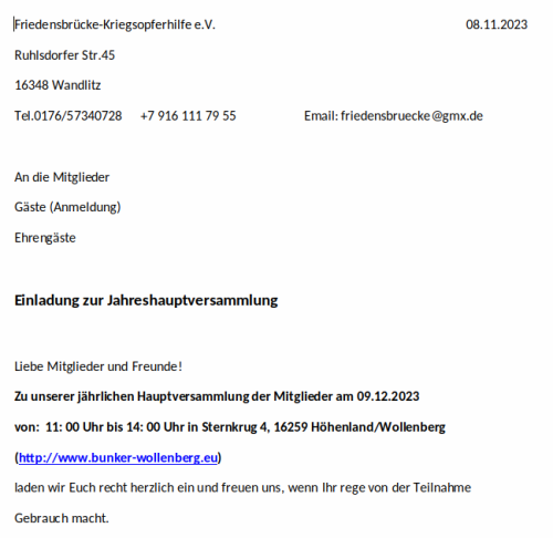 Friedensbrücke – Kriegsopferhilfe e.V. • Handy: +49 176 57340728 • E-Mail: friedensbruecke[at]gmx.de
